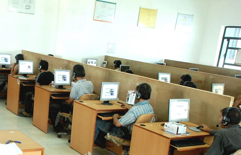 In today’s world of technology Language Lab is considered as one of the best ways to prepare the students to meet the upcoming challenges. It is conducted for the enrichment of oral skills. The motto is not only to groom the students at oral skills but to inculcate business ethics as well. In Indian scenario where coming out of shackles of hesitation vis-à-vis the foreign tongue. All the three languages English, German and French is commixed in one room, a mammoth task where communication lab comes to its aid. For this different tools are used like English Deluxe by which students are able to learn the correct pronunciation & can listen to their recorded voice as well .